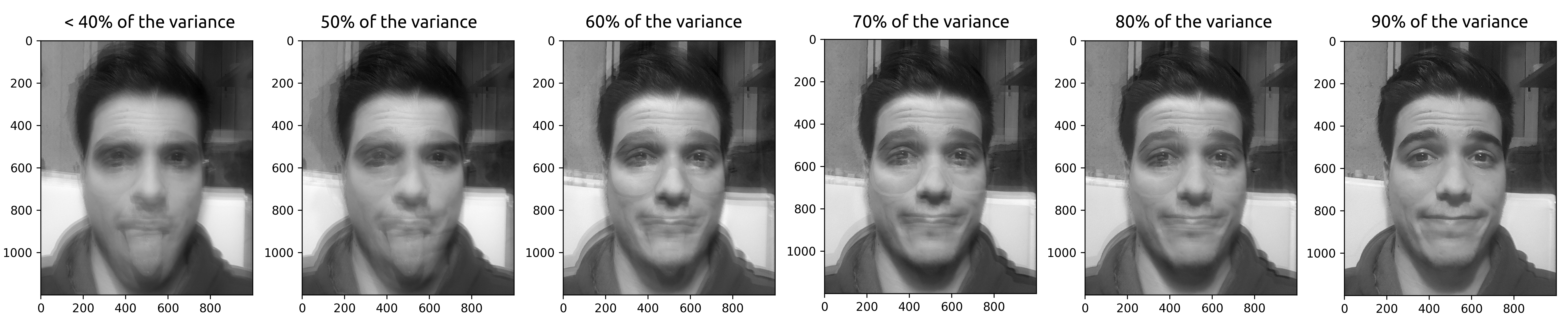 On the figures below you can see the result of different PCAs progression preserving from 40% to 90% of the variance.