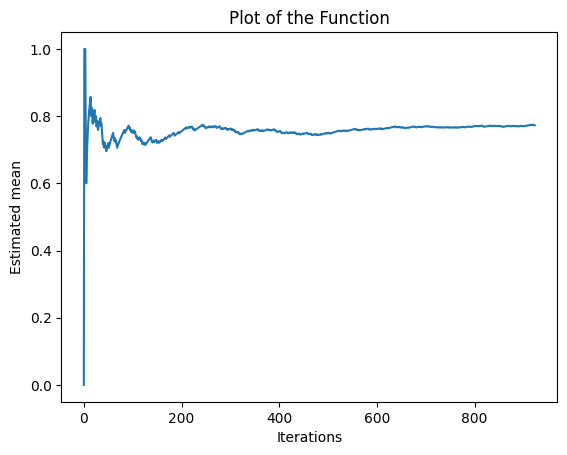 In the next plot, we can see two lines. The blue line represents the estimated mean obtained using the optimistic initial values method, and the orange line represents the estimated mean obtained using the UCB1 method. The plot helps us visualize the convergence of the estimated means towards the actual probability of gaining a reward for each bandit machine.