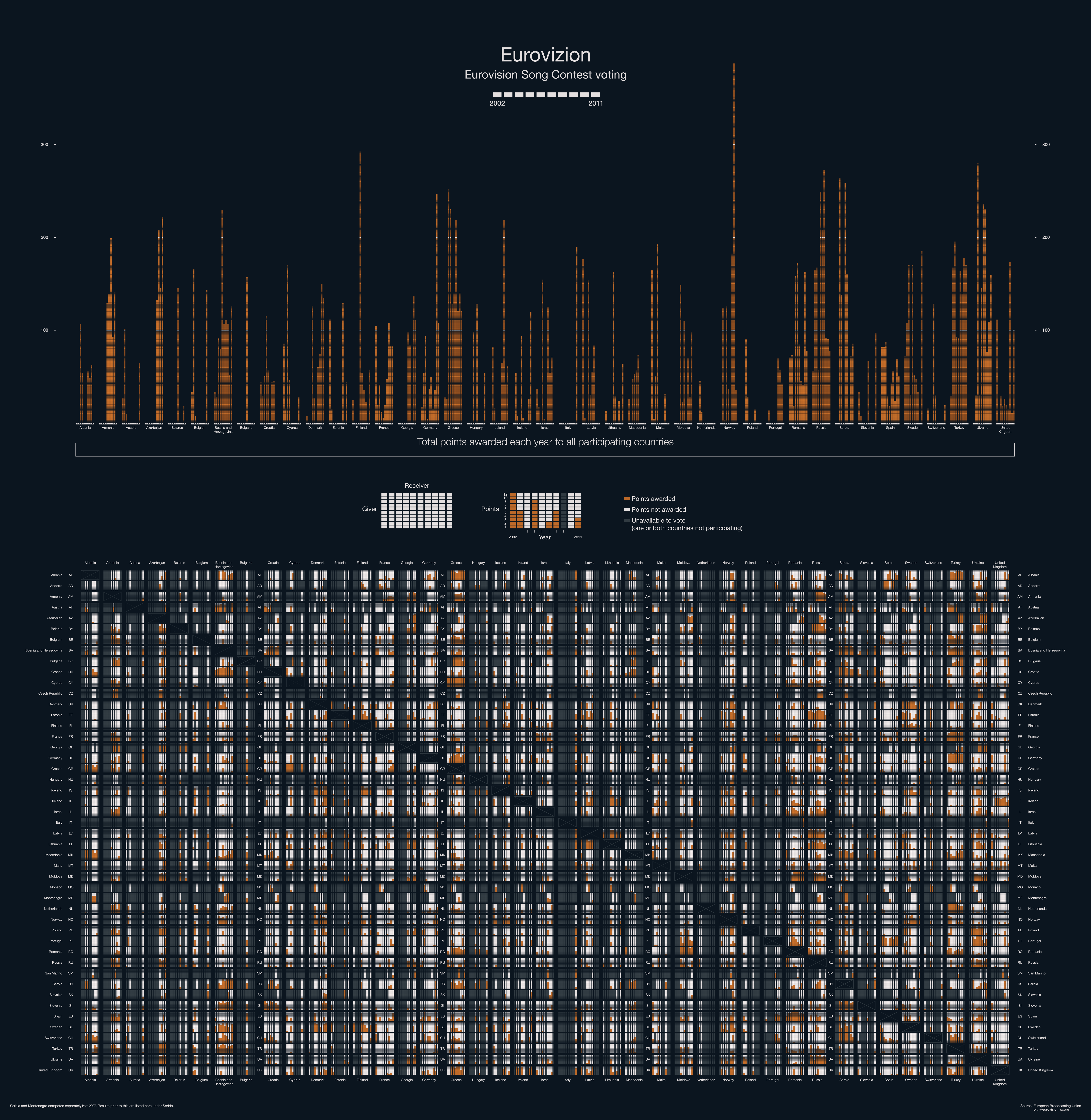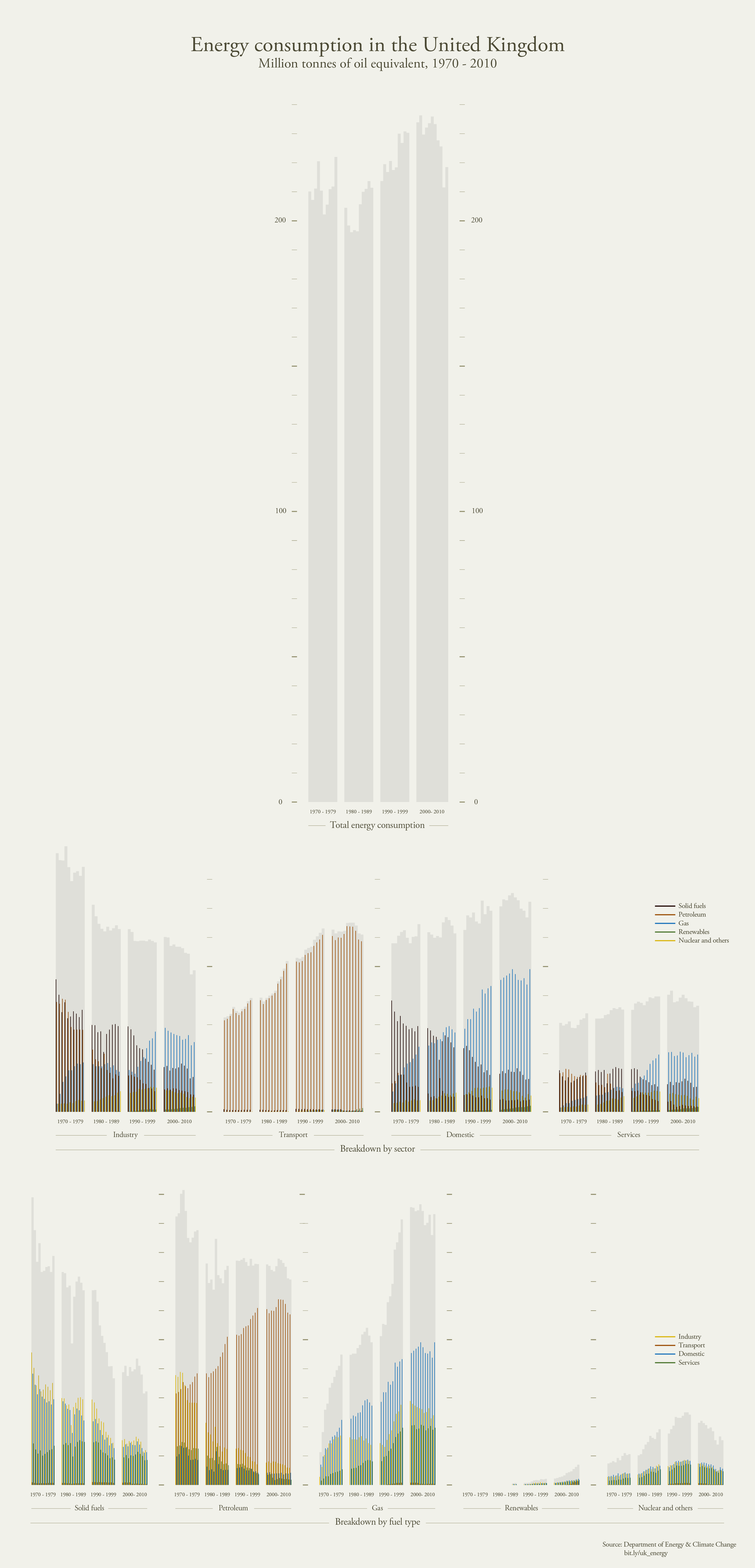 Too often, I see visual representations of data used as a means to an end, reinforcing or adding creditability to an argument, or worse still an attempt to decorate or distract. Those experienced with handling large quantities of raw data will know of the pleasures that can be had from uncovering hidden truths buried within. These may be unusual and unexpected, sometimes even controversial. They provoke thought, spark conversations, and encourage further exploration. By carefully selecting data and display methods, we are able to communicate these discoveries without explicit exposition, allowing the reader to explore the rich data landscape that lies before us.