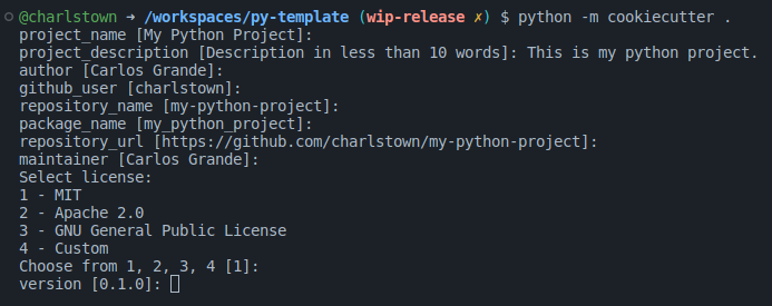 python -m cookiecutter https://github.com/charlstown/cookie-python.git
