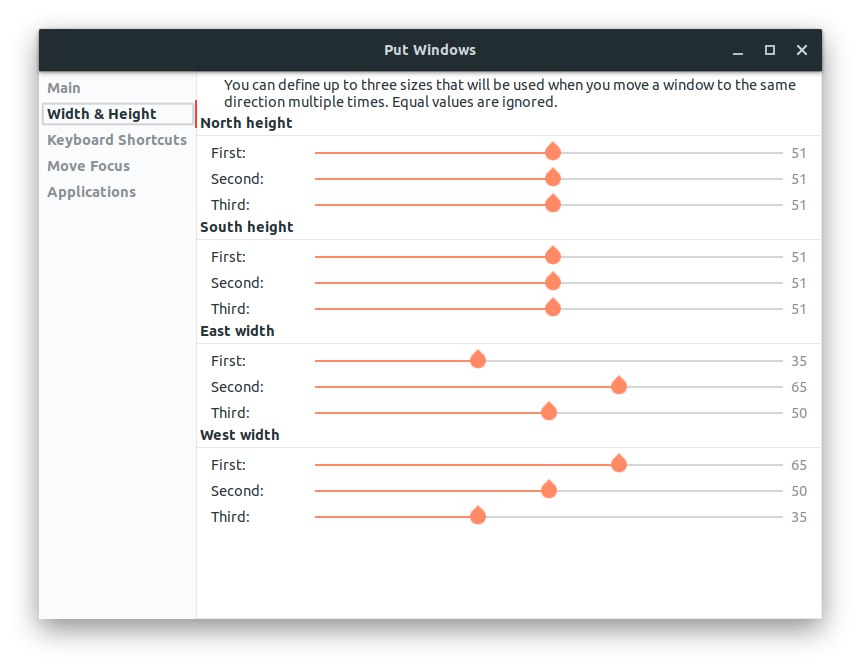 PutWindows is more complicated to configure. It works by three defined sizes that will be used when you move a window to the same direction multiple times or using numeric commands like start + number. The number refers to a position on your screen. Once the rules are created it is so intuitive. Follow these steps to design your ideal configuration.